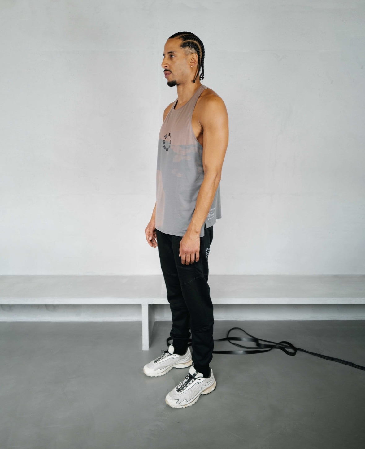 Front Print, laser cut, taped armhole + flat seams for less abrasions, shorter back body for better movement, air circulation spine holes