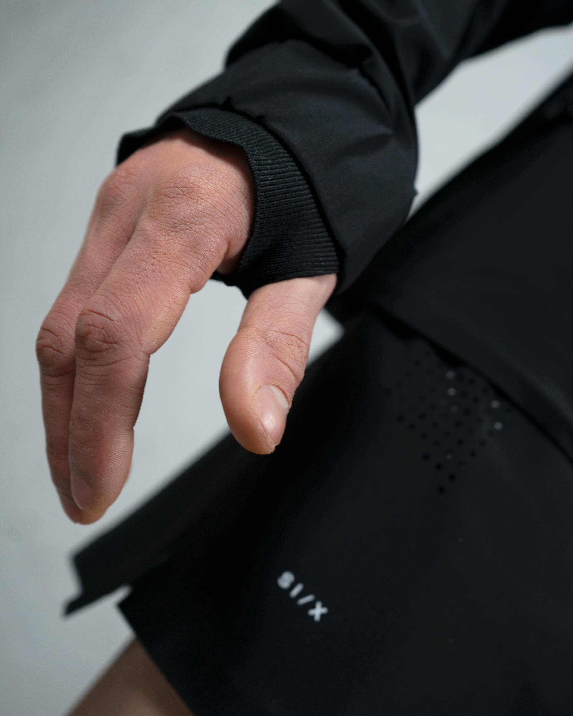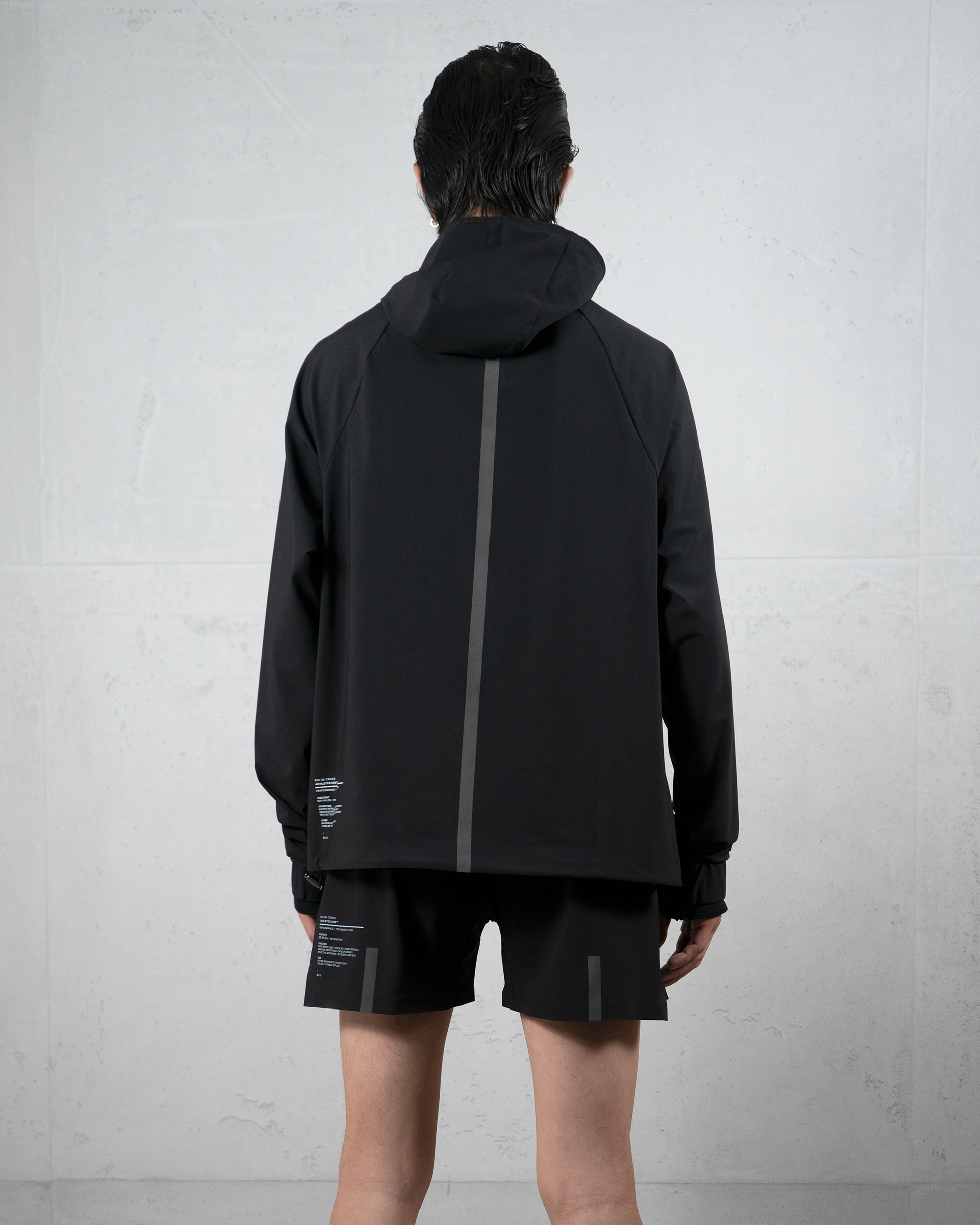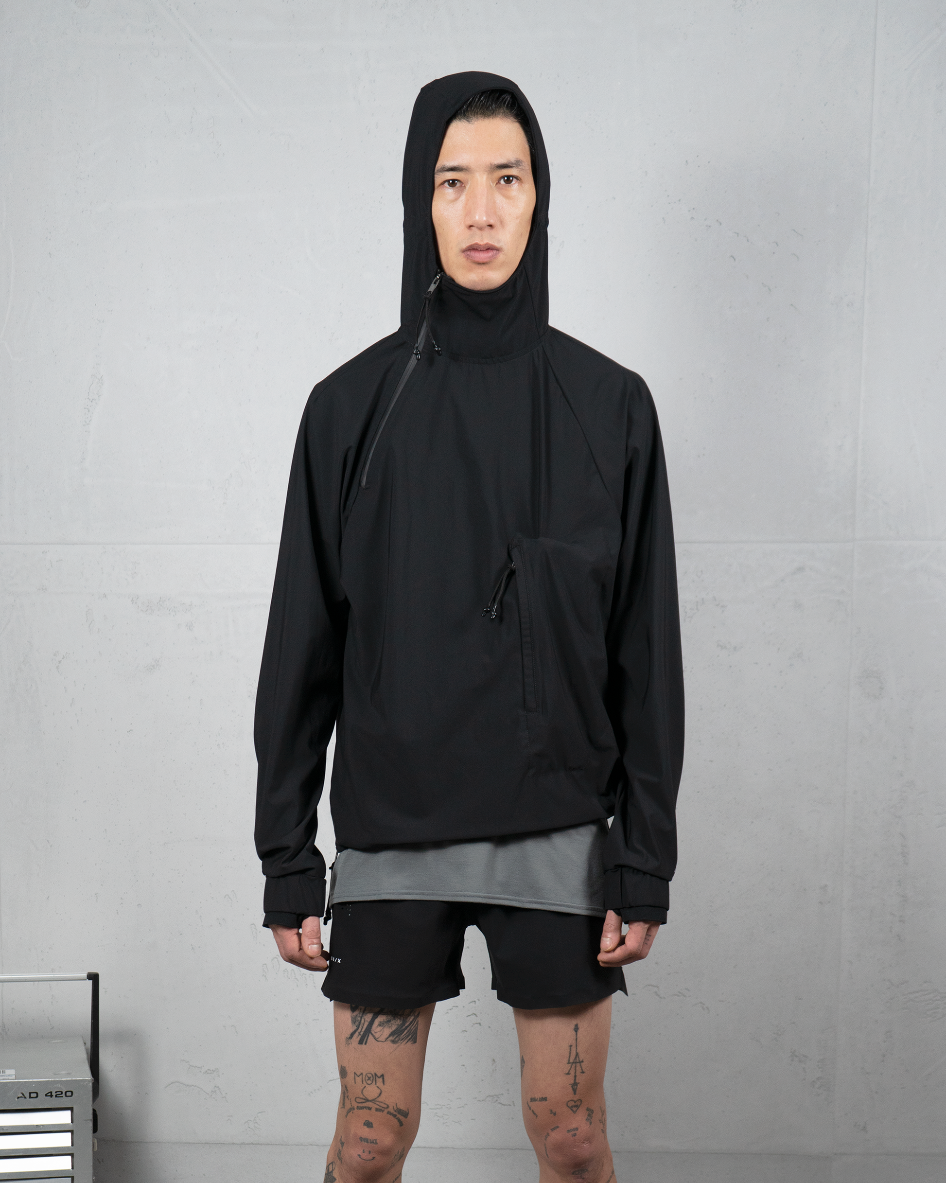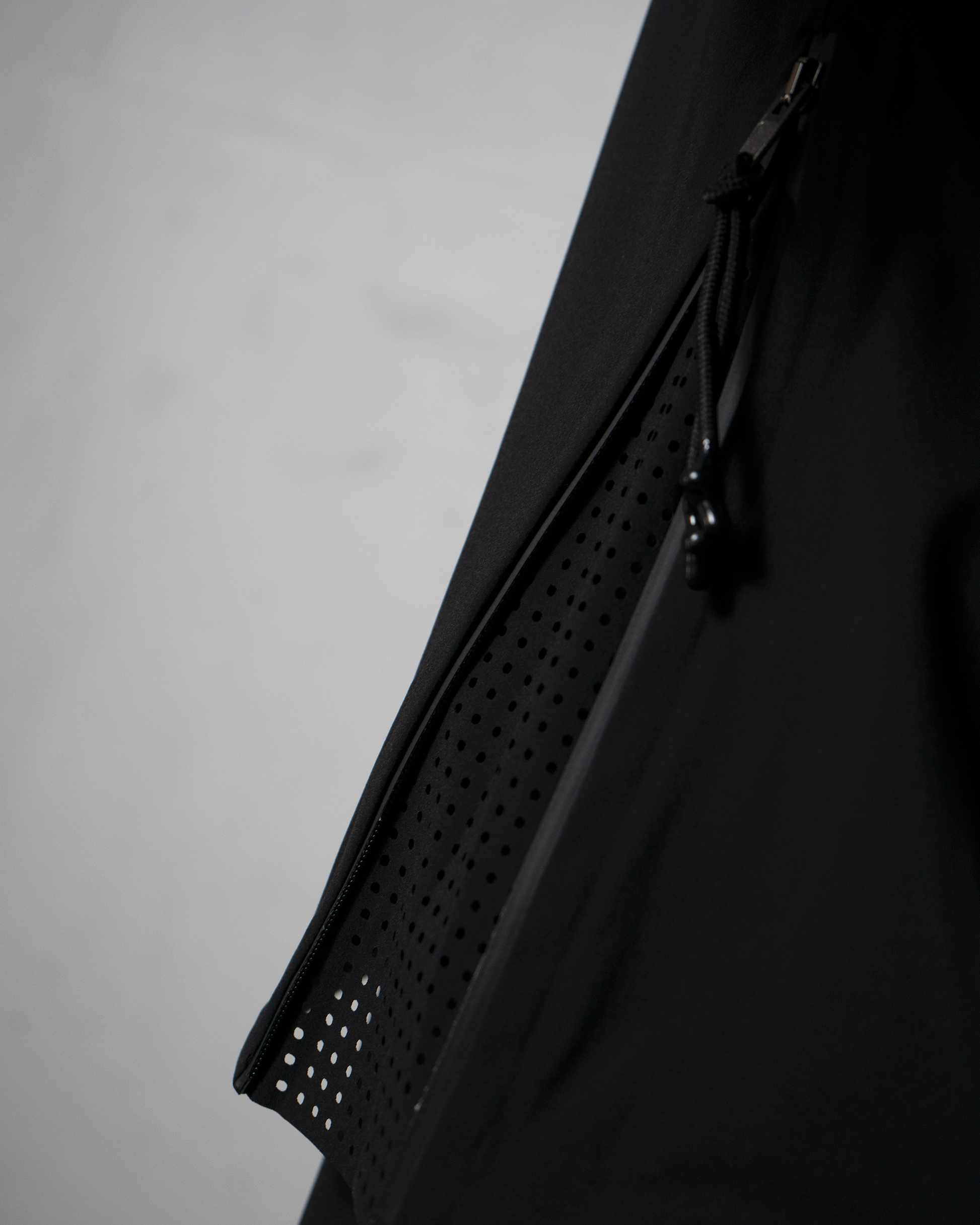 Chest pocket, transforms into shoulder or hip pouch, windshield neck, sidezip for better movement and air circulation, double cuff with thumbholes, adjustable hem and hood, water repellent zippers